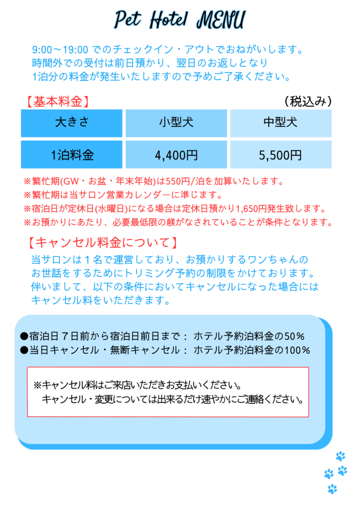 「ペットホテル利用規約兼同意書」 にご記入いただきます